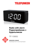 Below you will find brief information for Radio with alarm clock TF-1566U. This radio alarm clock boasts dual alarms, each customizable with a buzzer, radio station, or USB/SD card playback. It features FM radio with auto-scan and memory for up to 30 stations. Enjoy MP3 playback from USB and SD cards, and use the AUX input for external audio devices. Clock and alarm settings are retained even with power loss thanks to a backup battery.
